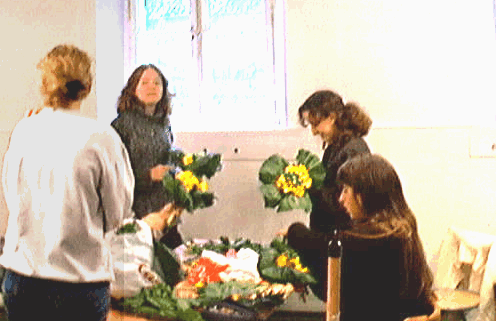 Les élèves composent des bouquets de fleurs avec
